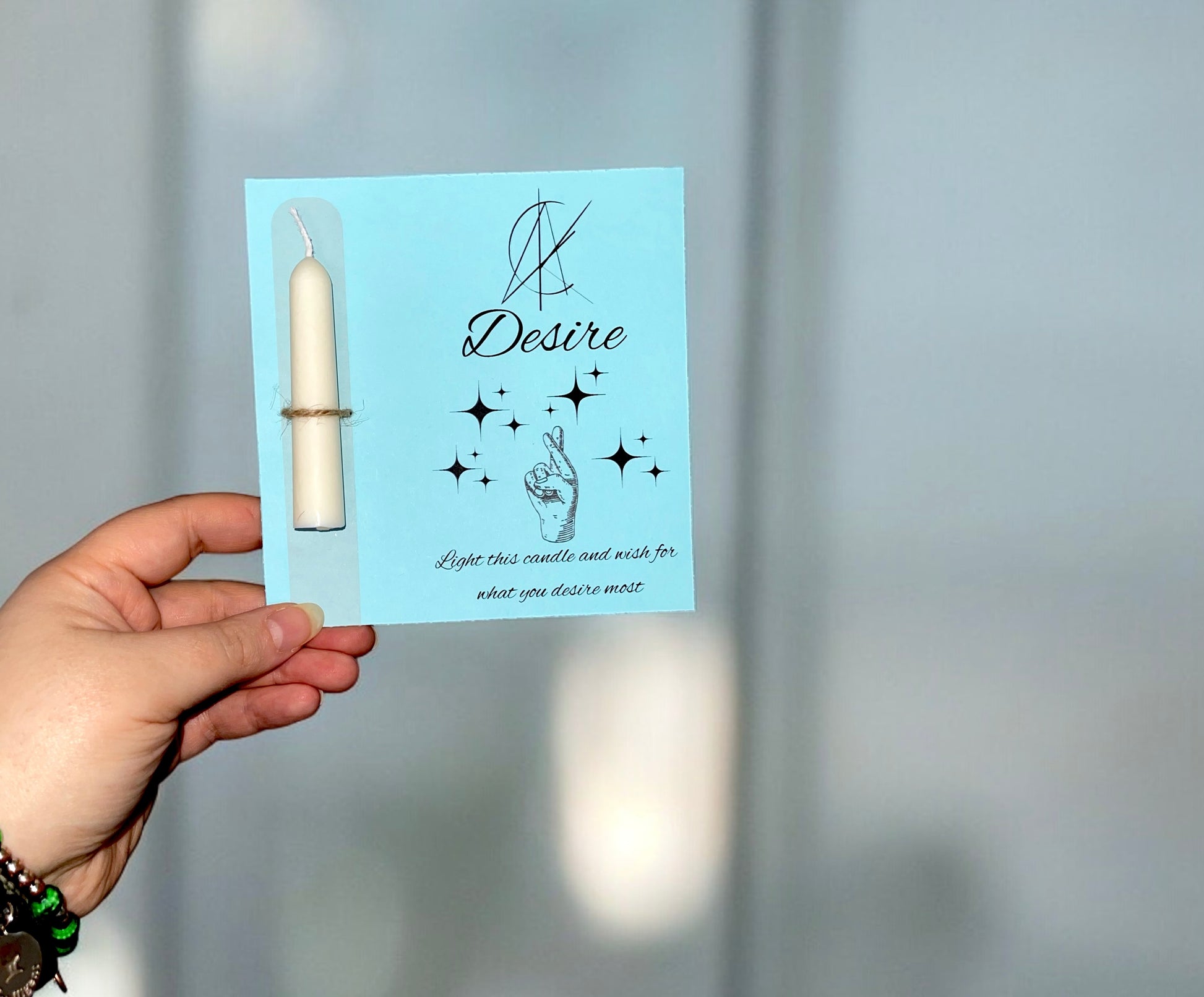 DESIRE - Handmade wish candle crafted with positive energy and love. Made with 100% soy wax, this mini candle is perfect for setting intentions and manifesting your desires. Let the good vibes surround you and ignite your wishes with this beautiful candle.